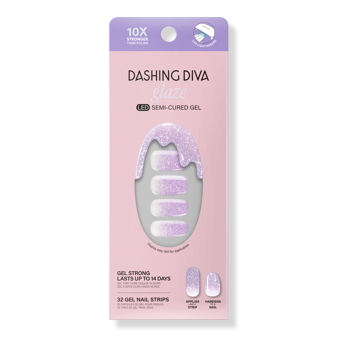 Get the pro-finish and sculpted effect of a salon gel manicure at home with ease. Dashing Diva's GLAZE innovation is a semi-cured gel strip that cures under an LED lamp, delivering salon results: molded shape, mega volume, mirror shine that's gel strong for up to 14 days.