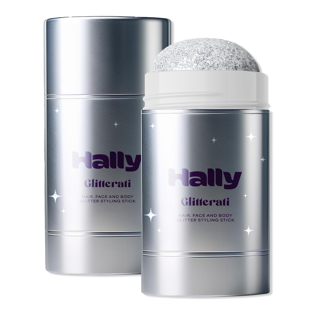 HALLY's mess-free glitter styling stick can be used on hair, body and face. On hair, it gives a strong, sleek hold with a bold glitter finish.