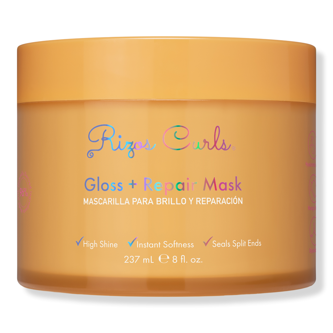 Rizos Curls Gloss + Repair Mask is a silicone-free treatment mask for instantly smoother, softer, shinier hair. This repairing formula, made with Hyaluronic Acid and Mango Butter, helps seal split ends, reduce frizz, and boost instant gloss for visibly healthier hair with lasting high shine.