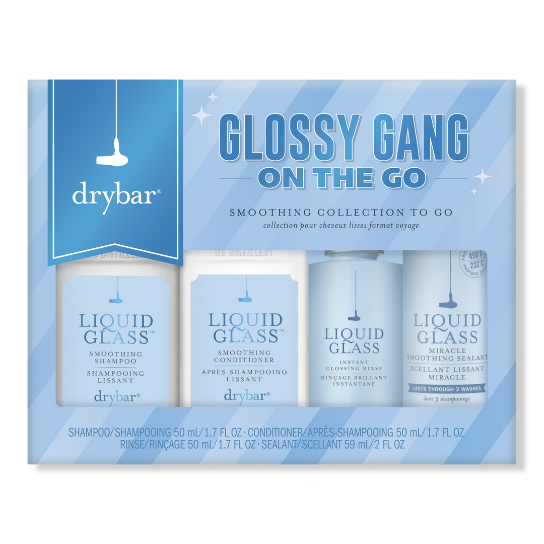 Drybar Glossy Gang On-The-Go is a frizz-fighting travel set featuring Drybar's Liquid Glass Collection includes everything you need for smooth, shiny hair at home or on-the-go.