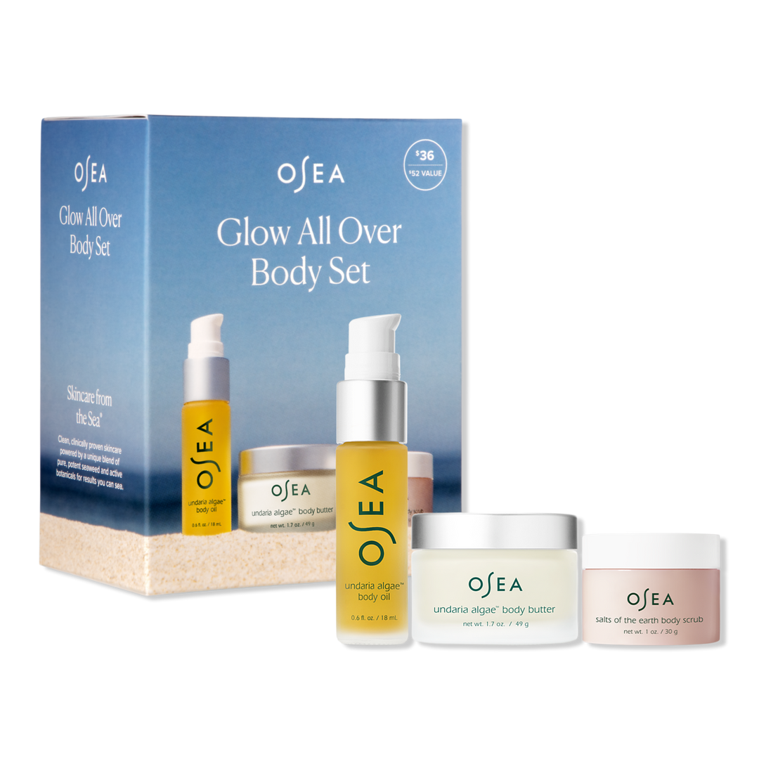 OSEA's Glow All Over Body Set features three travel-sized, body bestsellers for healthy, hydrated and glowing skin all over.