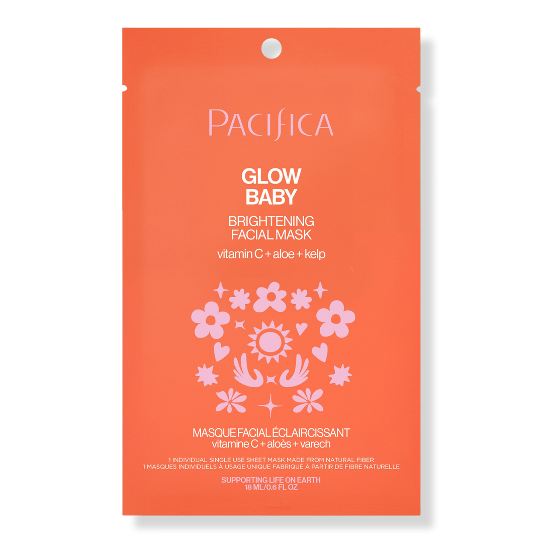 Pacifica's Glow Baby Brightening Facial Mask is a natural sheet mask infused with a fast-absorbing brightening serum for instantly glowing skin.