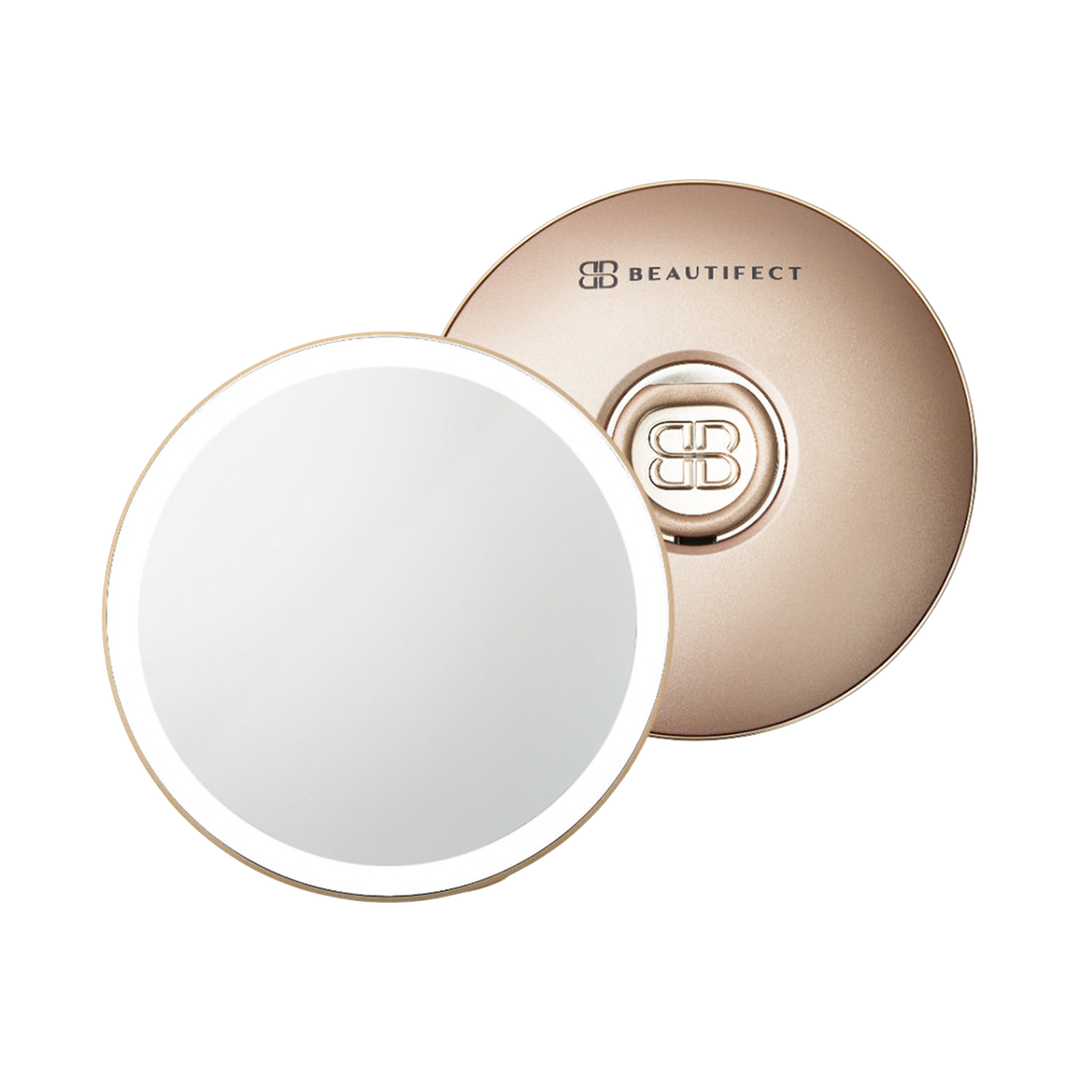 Crafted for life on the go, the Glow Compact combines timeless luxury with cutting-edge technology. This sleek, vegan leather mirror features sensor illumination, CRI 90+ lighting, 3x magnification, and a smart, portable design—your flawless beauty companion anywhere.