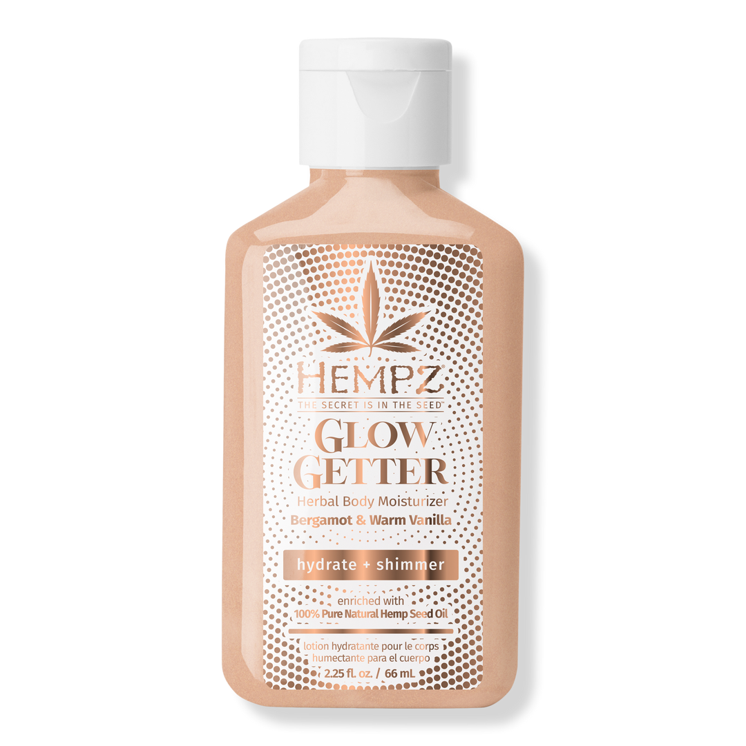 Get your glow on with Glow Getter Body Moisturizer! This lightweight shimmering body lotion hydrates and softens your skin while adding a rose gold shimmer for a sun-kissed sparkle. Packed with Squalane, Jojoba Seed Oil, and Hemp Seed Oil to help moisturize and strengthen the skin barrier.
