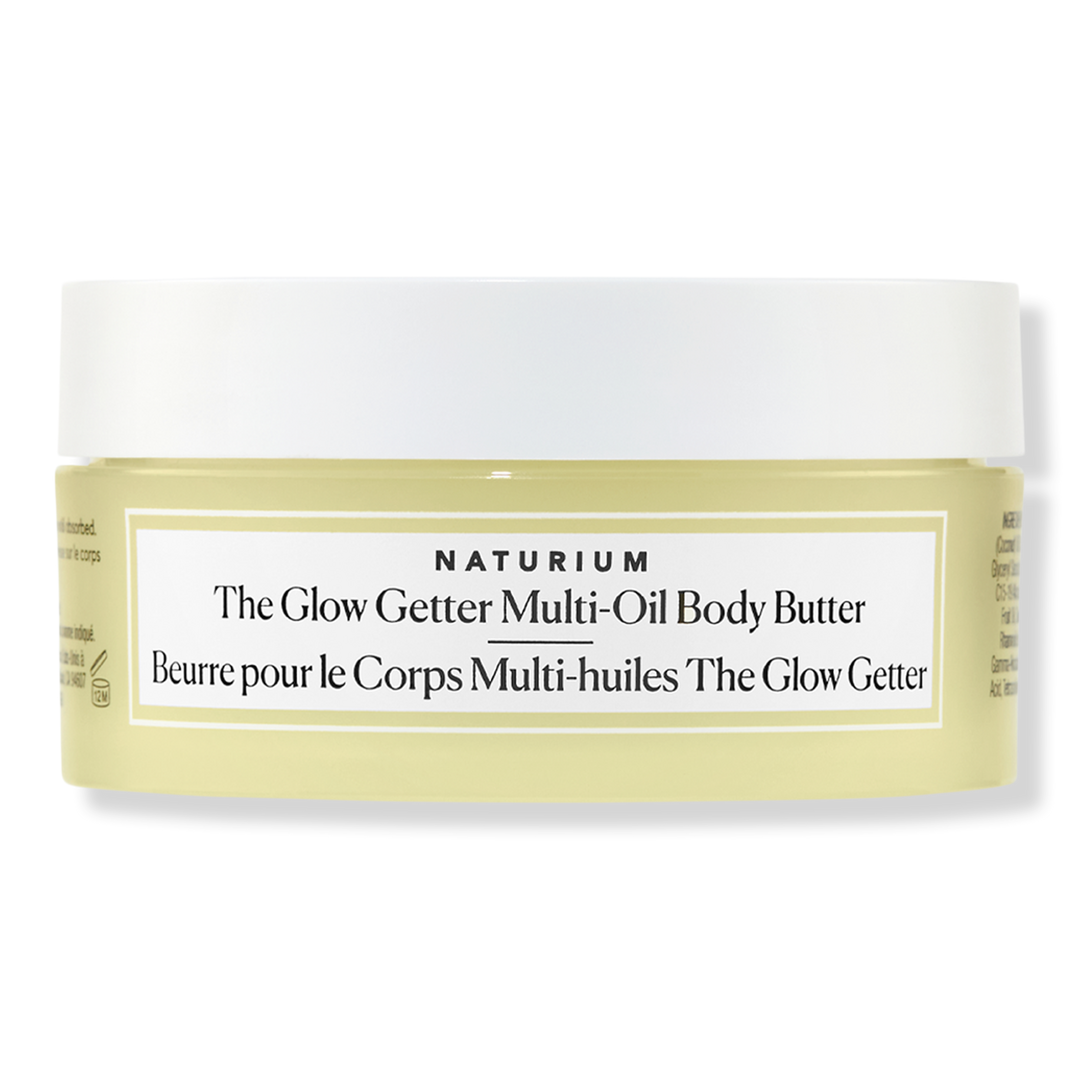 The Glow Getter Multi-Oil Body Butter from Naturium intensely moisturizes, nourishes, and soothes skin. Formulated with botanical oils, shea butter, glycerin, squalane, and plant-based peptides that help firm skin's appearance for a healthy, hydrated glow.