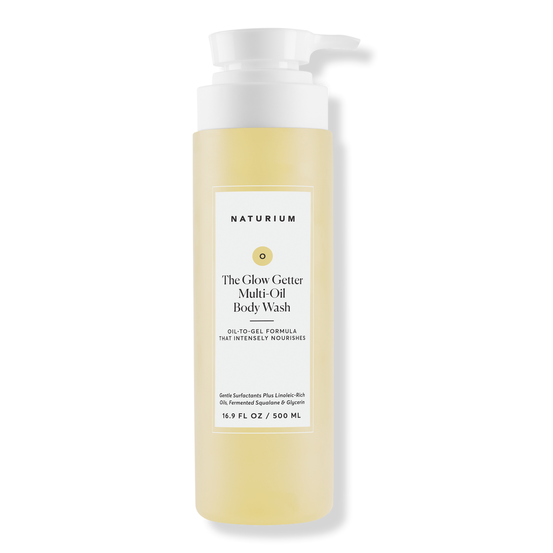 The Glow Getter Multi-Oil Hydrating Body Wash from Naturium transforms from a luscious oil consistency to a gentle lather, cleansing without stripping the skin of essential moisture.