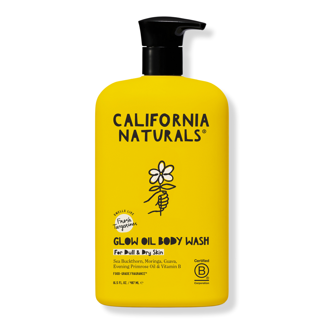 California Naturals Glow Oil Body Wash is a light oil gel, that gently foams to deliver nutrients and vitamins for soft, glowy skin that transports you with every wash.
