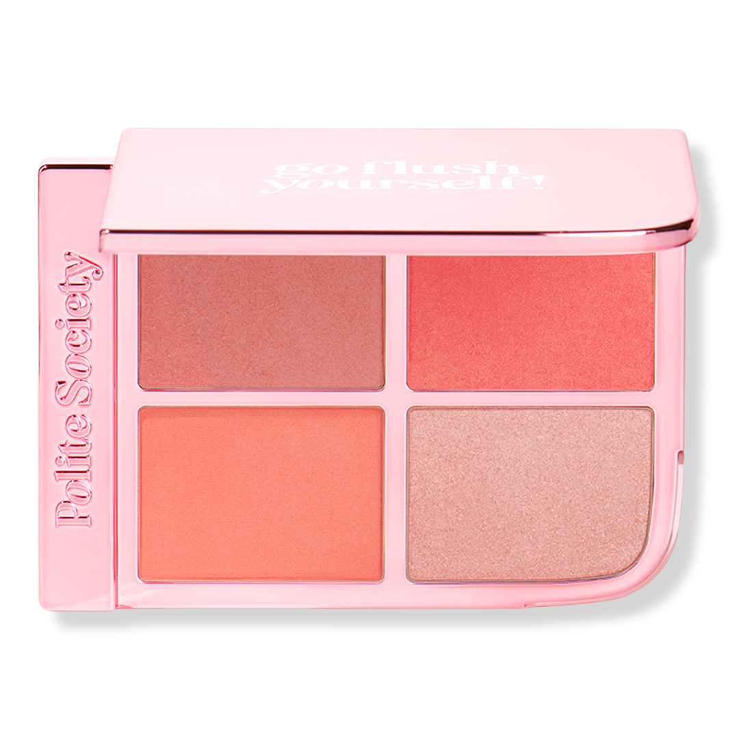 Polite Society Go Flush Yourself Blush & Highlight Face Palette includes 3 blushes & 1 highlighter in multi-modern finishes designed to be mixed, matched and layered to achieve any look.