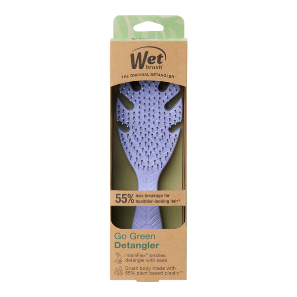 Meet the Wet Brush Go Green Detangler, a brush that helps hair stay strong and healthy! The Go Green Detangler gently loosens knots, on wet or dry hair, without pulling or snagging. Body of brush made of 56% plant based plastic.