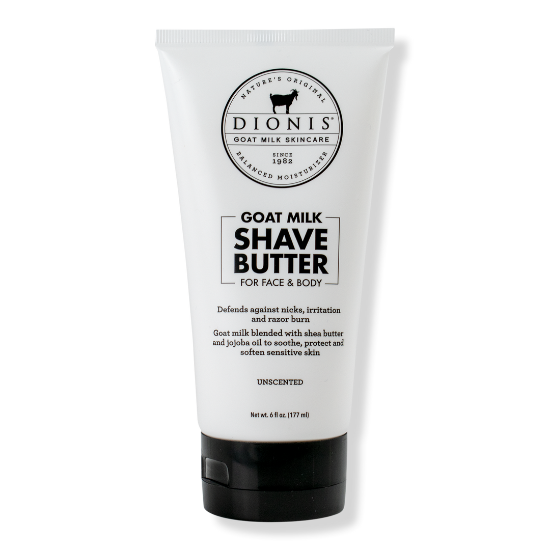 Fragrance-free Dionis Goat Milk Shave Butter delivers a smooth, protected shave; moisturizing, gentle, and perfect for sensitive skin.