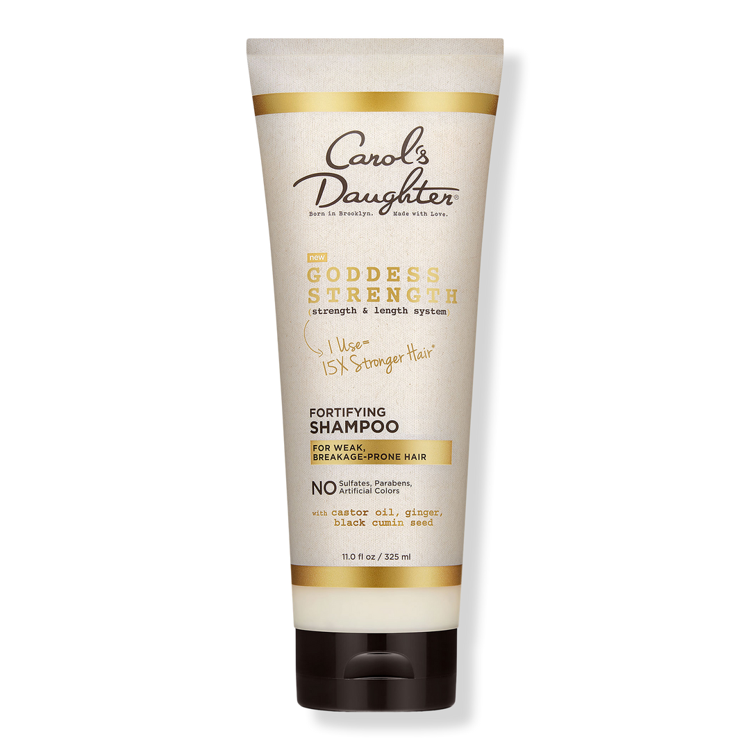 Carol's Daughter Goddess Strength Fortifying Shampoo cleanses while moisturizing and provides hair that's stronger and less prone to breakage.