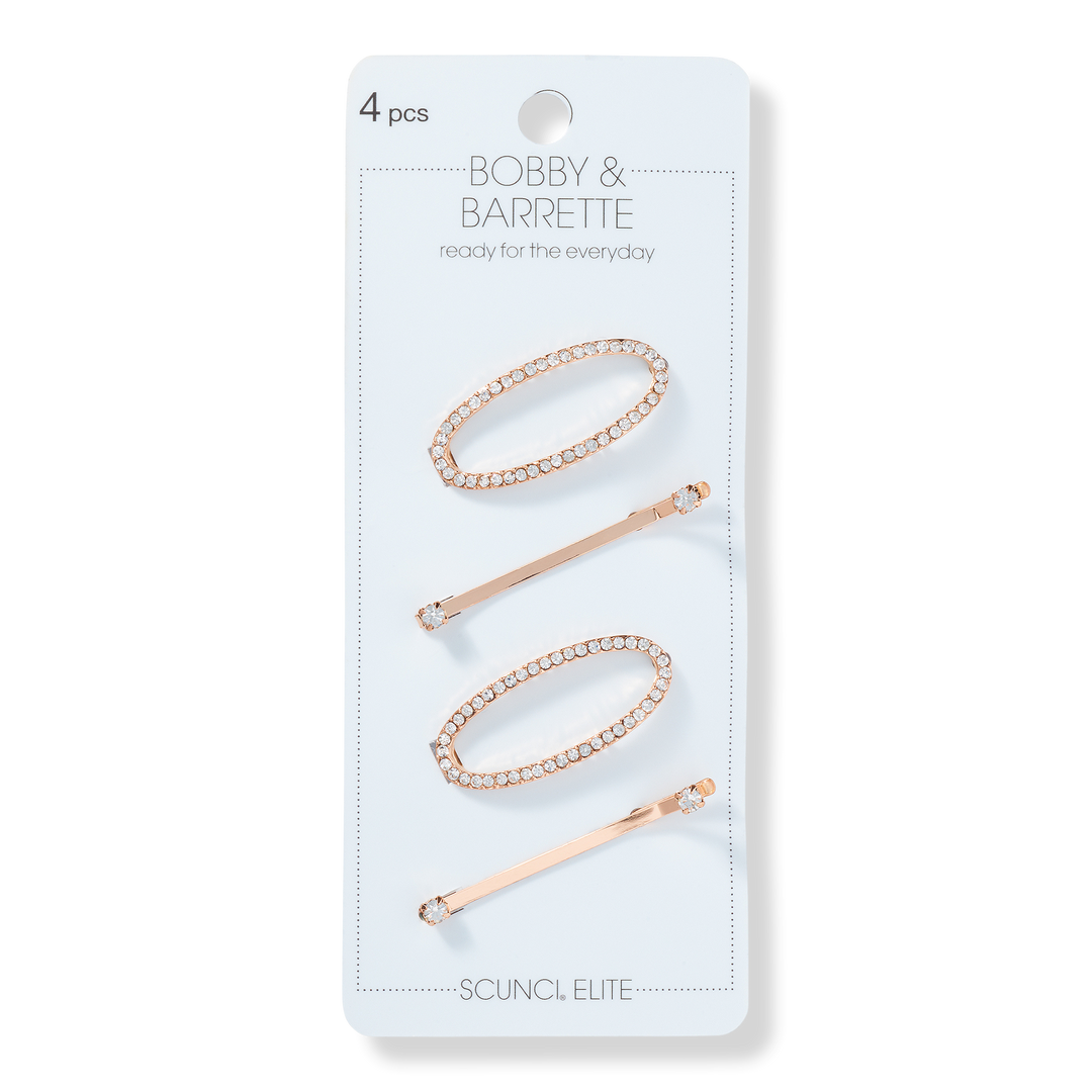 Stack the set of Scünci Elite Gold-Tone and Crystal Bobbies and Barrettes to add more flair to your hair! 2 oval clips and 2 straight pins.
