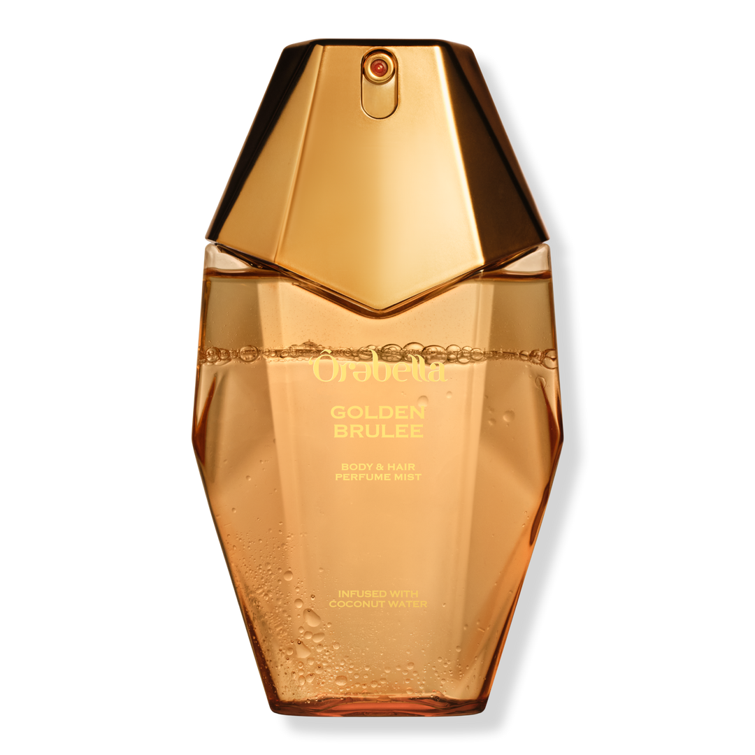'Ôrəbella founded by Bella Hadid. GOLDEN BRULEE is an amber gourmand centered on creamy warmth. An opening of ripe plum and spices melts into a smooth blend that's finished with a caramelization of tonka bean, vanilla, and cedarwood. Alcohol-free and infused with botanical water.