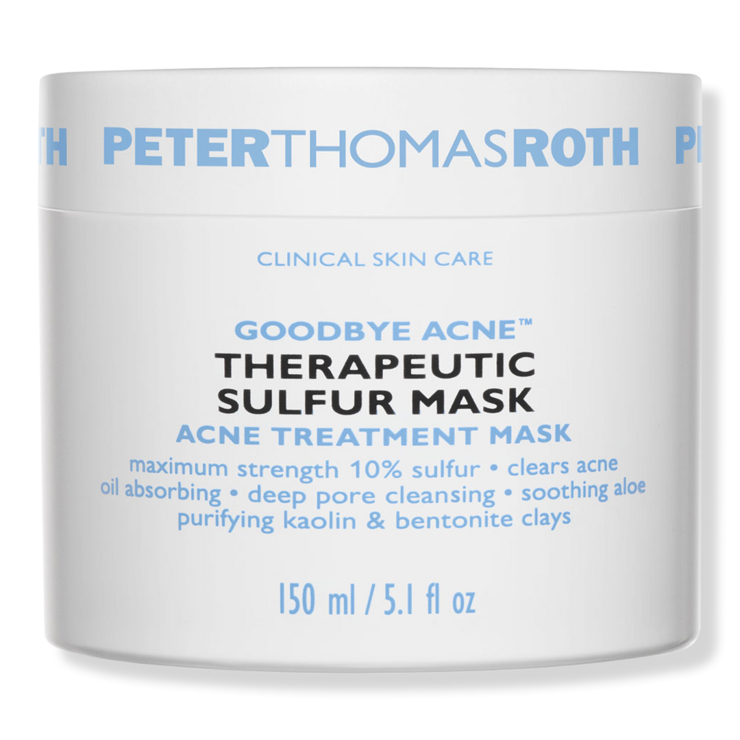 The Peter Thomas Roth Goodbye Acne Therapeutic Sulfur Mask is a medicated clay-based mask with maximum strength 10% sulfur that helps clear and prevent acne while reducing the look of clogged pores and excess oil.