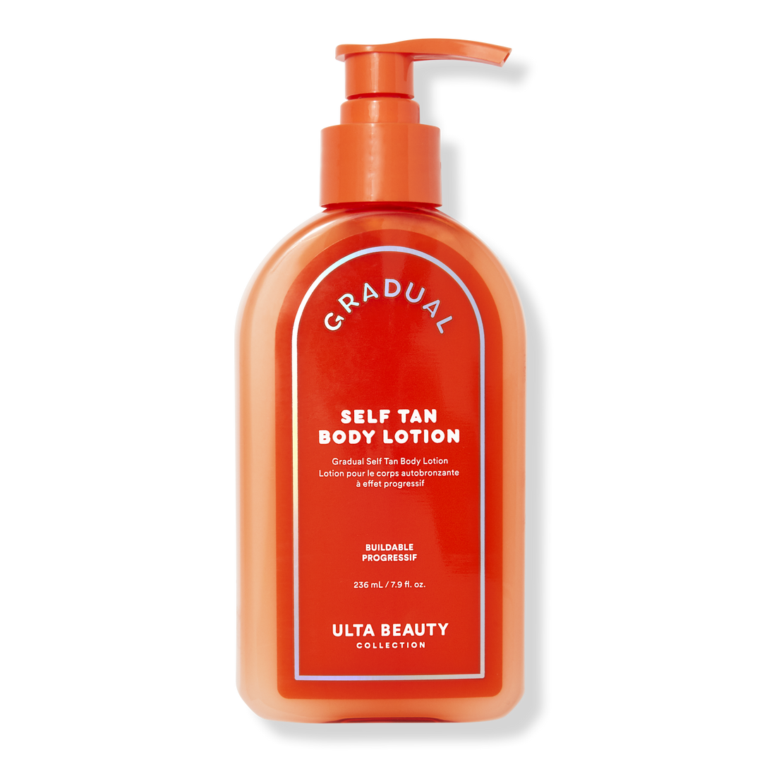 Glow your way with the Ulta Beauty Collection Gradual Self Tan Body Lotion That feels like a daily treat. This creamy lotion builds smooth, natural color with daily use. The rich and nourishing formula absorbs fast and is infused with Caffeine, Shea Butter & more to leave skin soft and nourished.