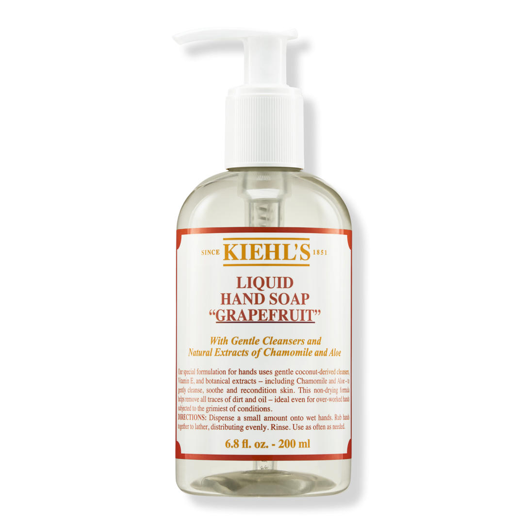 The Kiehl's Since 1851 Grapefruit-Scented Liquid Hand Soap is a nondrying, grapefruit-scented hand soap that helps remove all traces of dirt and oil.