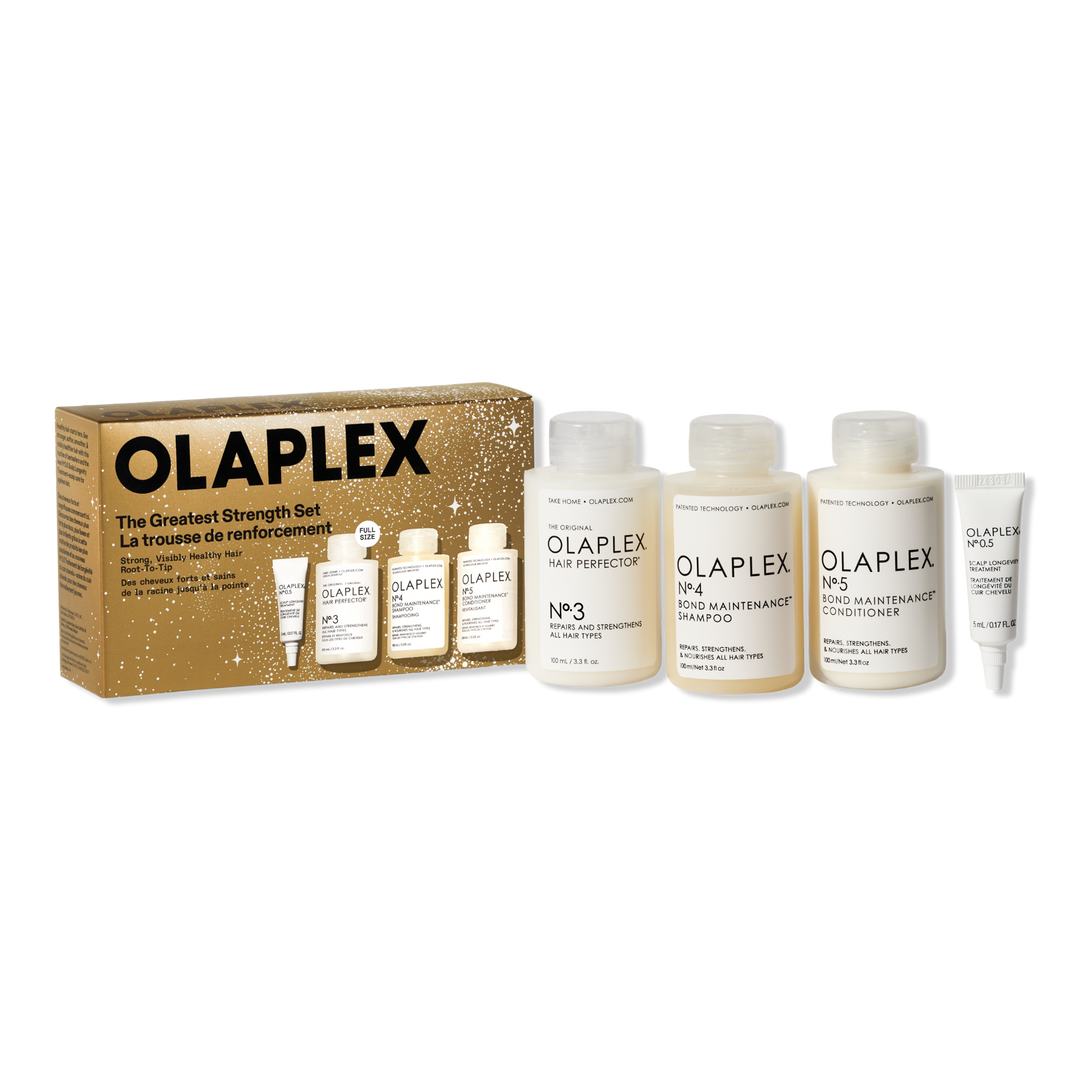 The Greatest Strength Hair Gift Set from OLAPLEX is a limited-edition set for strong, visibly healthy hair root-to-tip.