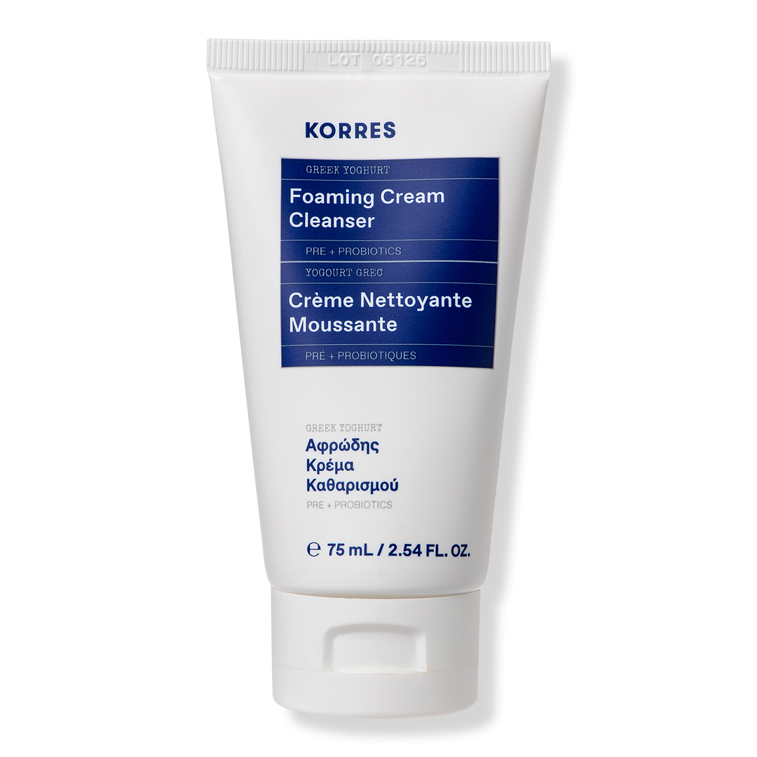 The best-selling KORRES Greek Yoghurt Foaming Cream Cleanser is a Mediterranean superfood cleanser, formulated with pre and probiotic rich real Greek Yoghurt that leaves skin pure and nourished in one cleanse.