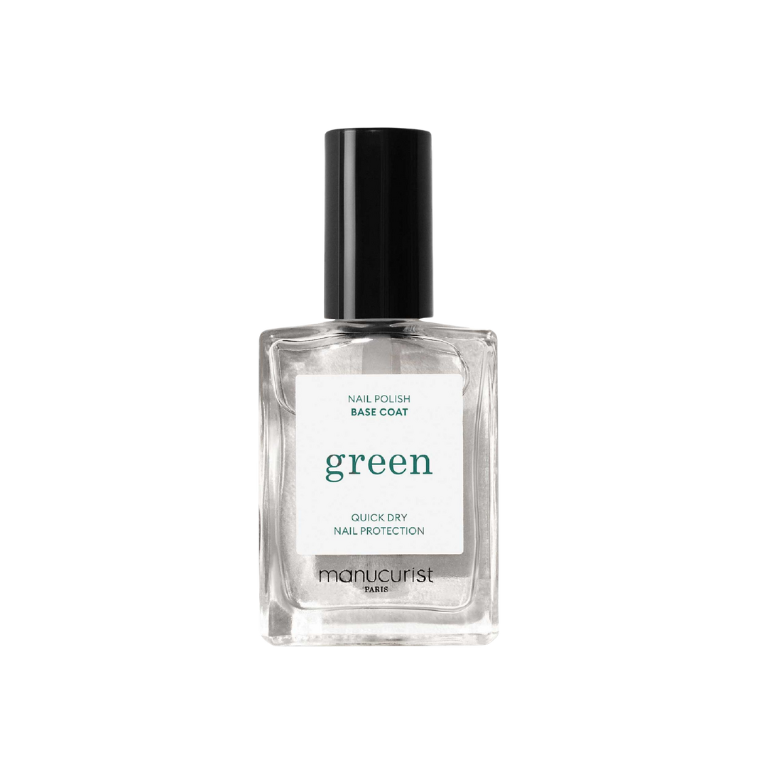 How to use the Green™ Base Coat? *Degrease nails using a cotton pad soaked in the degreaser *Apply 1 thin layer of Green™ Base Coat *Apply 2 thin layers of your chosen Green™ nail polish *Apply 1 thin layer of Sunshine Top Coat for gel-like shine *Optional: apply a drop of Drying Drops for faster drying and nail nourishment *To remove, soak a cotton pad with the Gentle Remover, place it on the nail, then gently rub to remove the polish