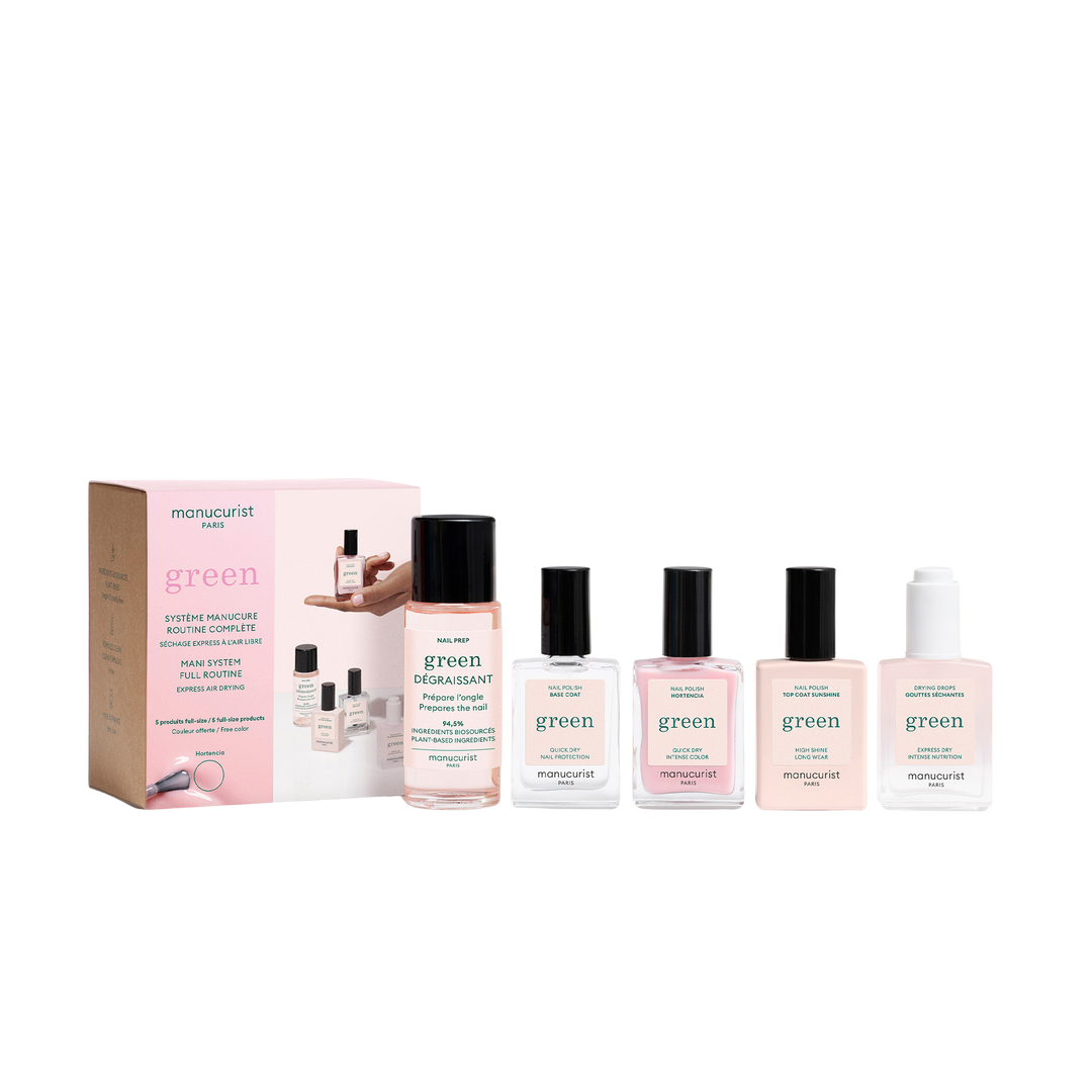 Ultra pigmented, easy & quick manicure routine. The full kit including everything you need for a full, fast, and Green Manicure routine. 5 steps to get intense color, shine and hold for up to 7 days, all for a lamp-free and with a "gel-effect" finish.