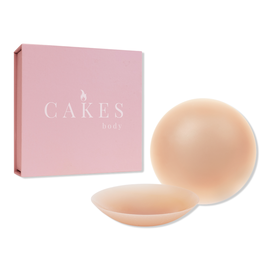 STEP 3: Cup your CAKES over the center of each breast (shiny side down) and hold in place for 5 seconds. Your body's natural heat will warm and mold your CAKES seamlessly to your shape.