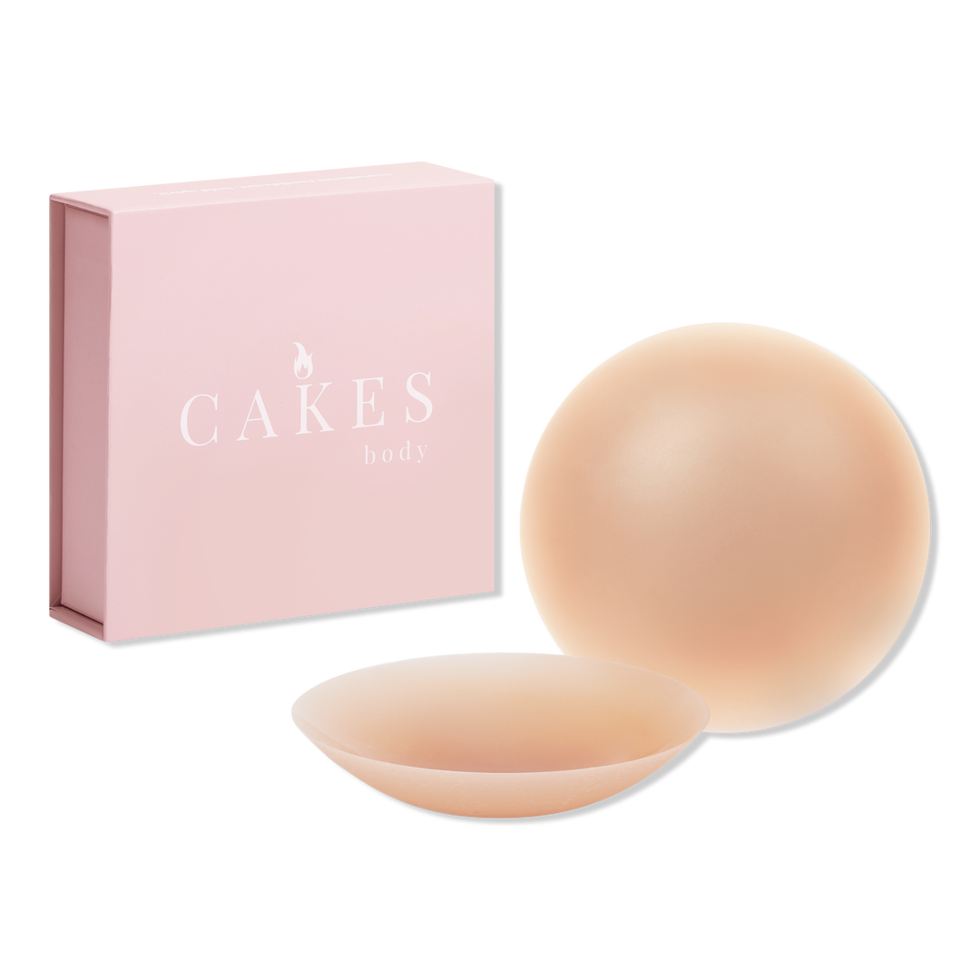 grippy CAKES circles, the grippy not sticky™ nipple covers by CAKES body. These patent-pending, dermatologist tested & approved covers offer seamless coverage and subtle shaping—no adhesive required. Designed to disappear under snug-fitting tops & sports bras.