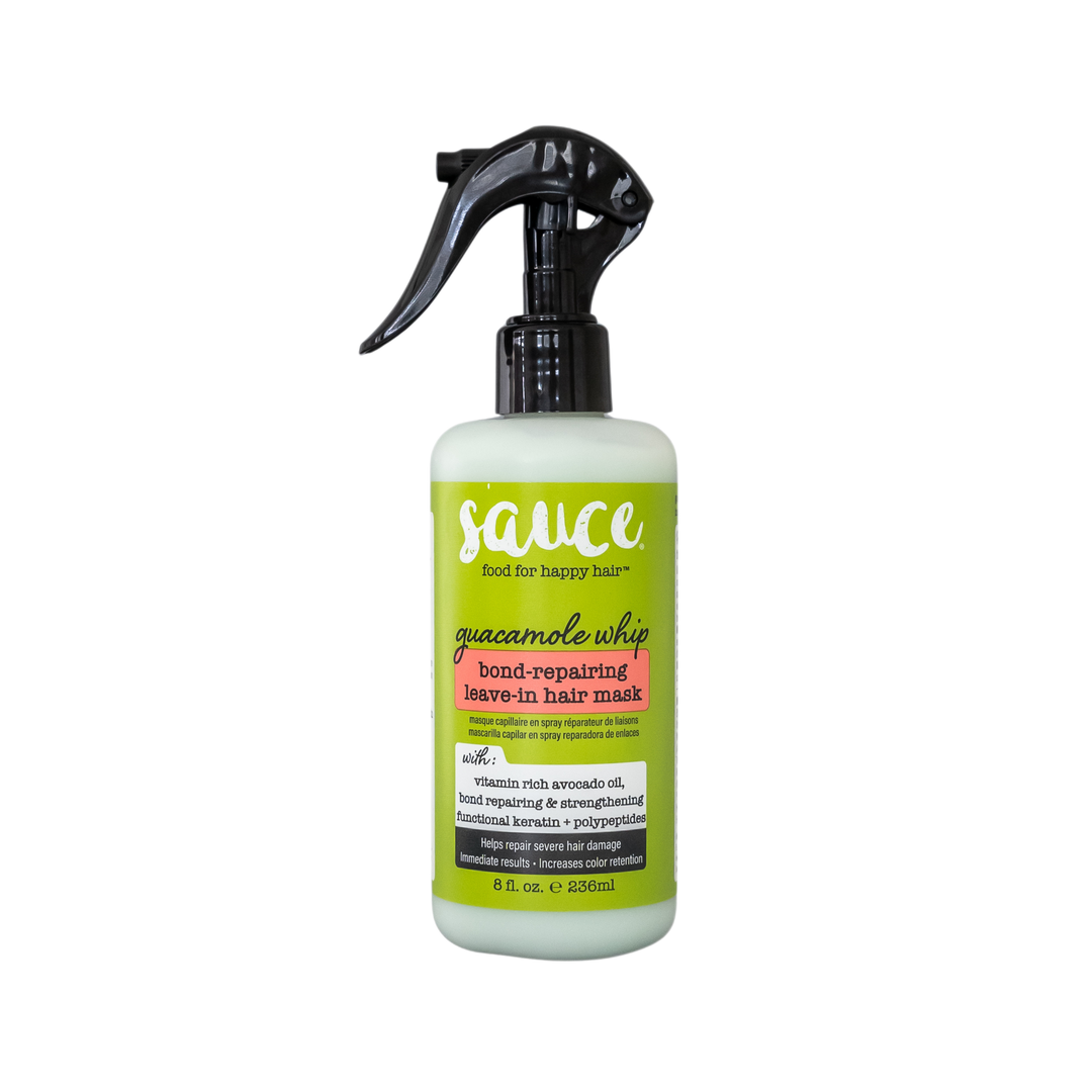 Your hair will thank you for this whipped, rich Guacamole Whip Bond Repairing Leave in Spray Mask; infused with the power of Avocado, Polypeptides, peptides and Quinoa. Repairs hair's bonds with immediate results and significantly improves color retention.
