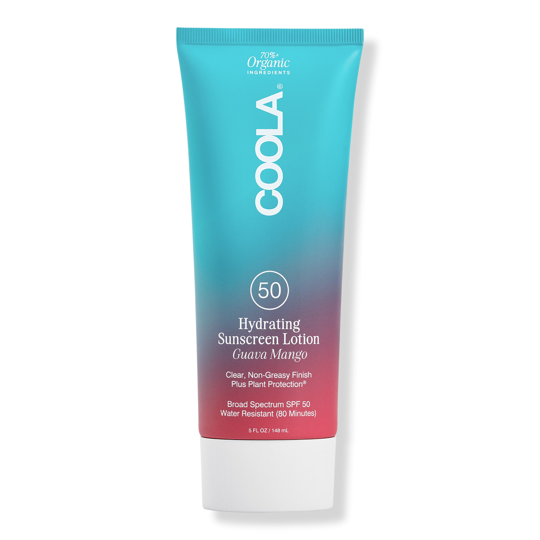 COOLA's Guava Mango Classic Body Organic Sunscreen Lotion SPF 50 with antioxidants and broad spectrum UVA/UVB protection delivers sheer, lightweight coverage.