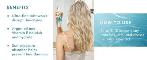 Hold 8-10 inches (20-25 cm) from hair and body; spray as often as needed. Can be sprayed directly on hair, skin, and clothing. Ultra-fine mist won't disrupt hairstyle.