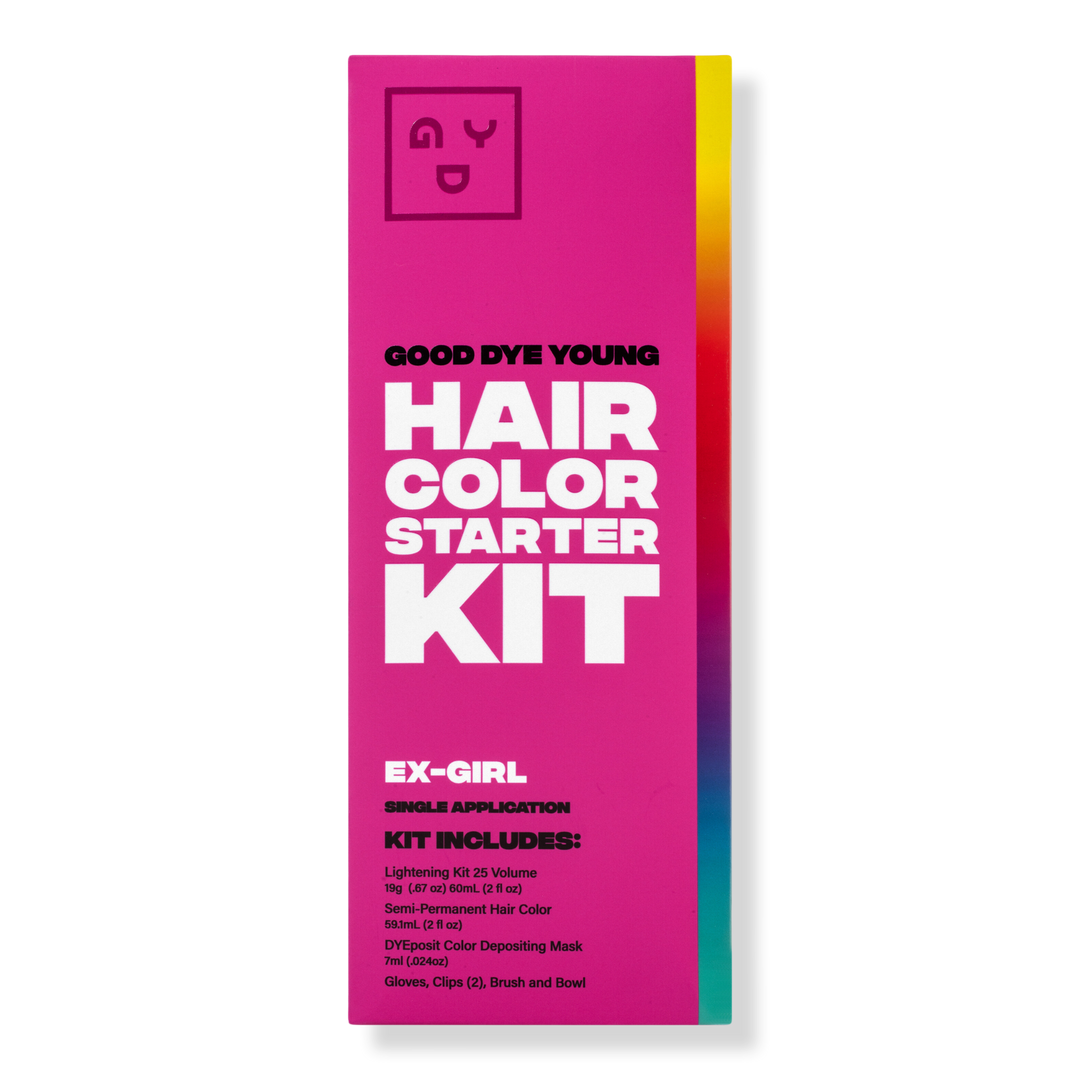 Good Dye Young's Hair Color Starter Kit contains everything you need to to add a pop of vivid color to your hair. Contains the perfect amount of product for money pieces, buzzcuts, bangs, dip-dyes, and everything in between!