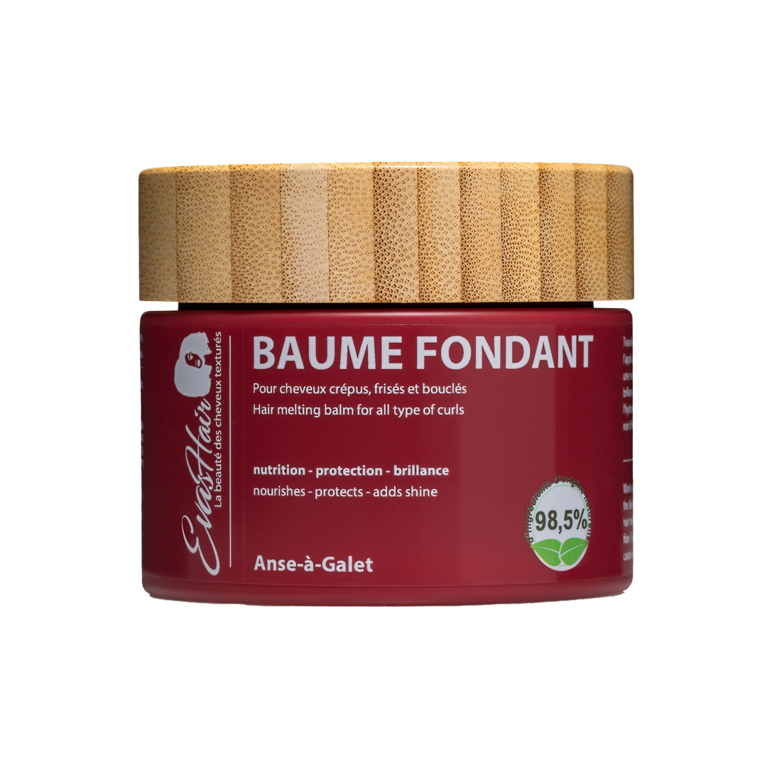 - Deep nutrition and reinforced fiber - Evashair Melting Balm acts as a true nourishing shield for the lengths and ends of hair. Its richness in plant oils and butters allows it to deeply nourish the hair fiber, where textured hair most often has areas of fragility. By coating the fiber, it helps to improve suppleness, limit dryness and enhance the overall appearance of the hair from the first uses.