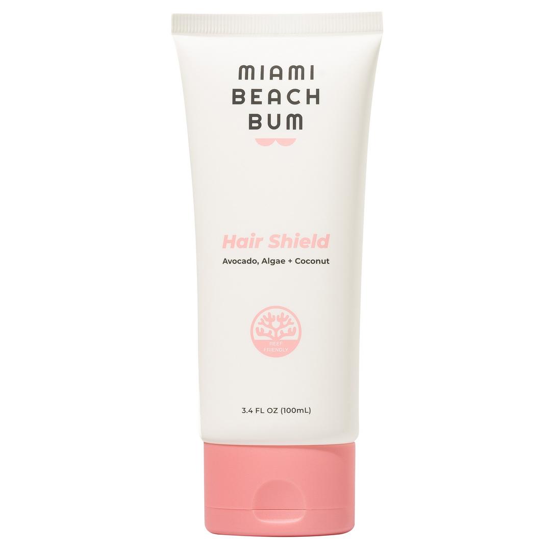 Miami Beach Bum, Hair Shield is a reef‑friendly leave‑in conditioner that protects all hair types from sun, saltwater & chlorine. Prevents tangles & frizz for smooth, manageable hair—perfect for pool, beach & outdoor days. Family‑friendly formula.