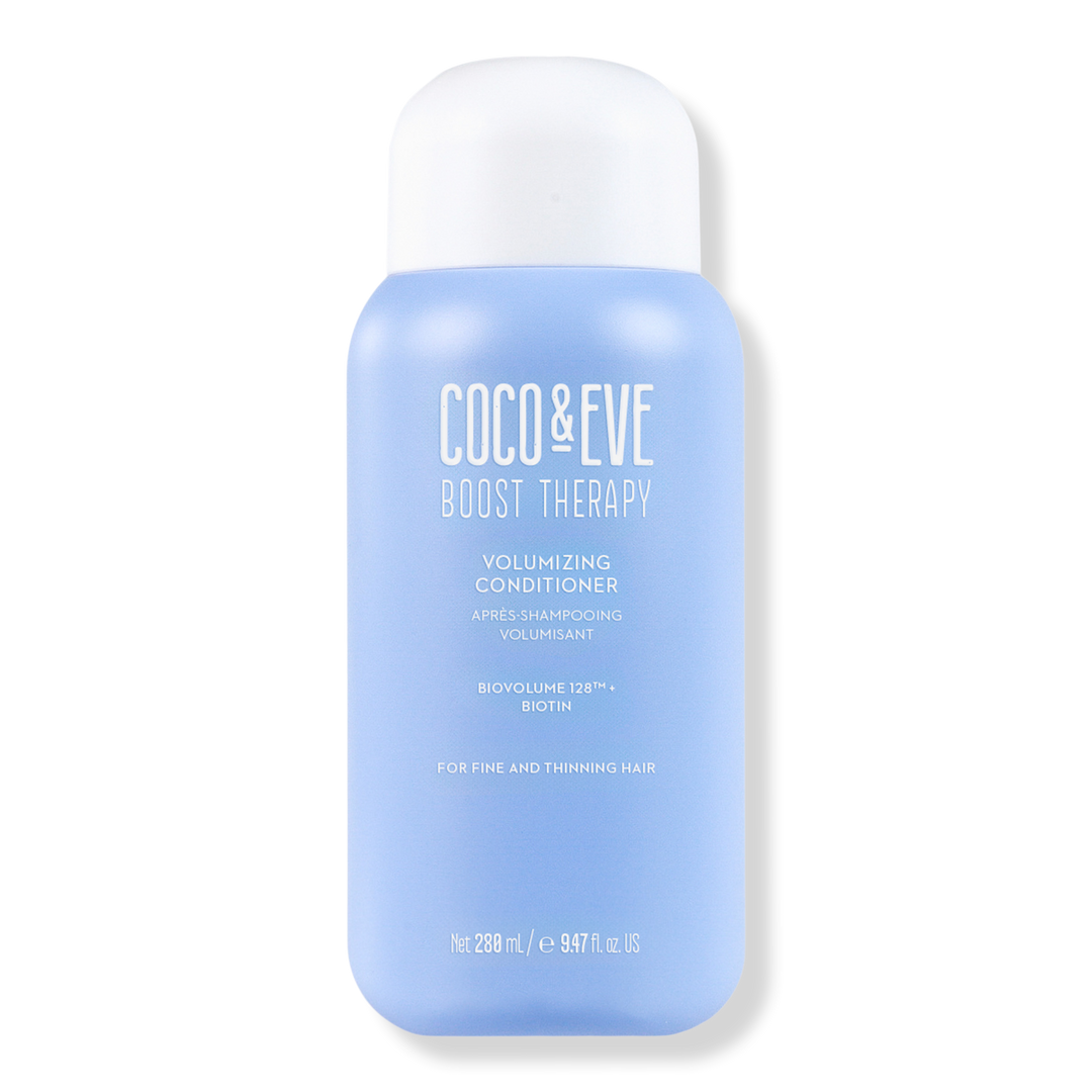 Experience fuller, healthier-looking hair with Coco & Eve Boost Therapy Hair Volumizing Conditioner, enriched with BioVolume 128 for a volume boost and a refreshing peppermint scent.