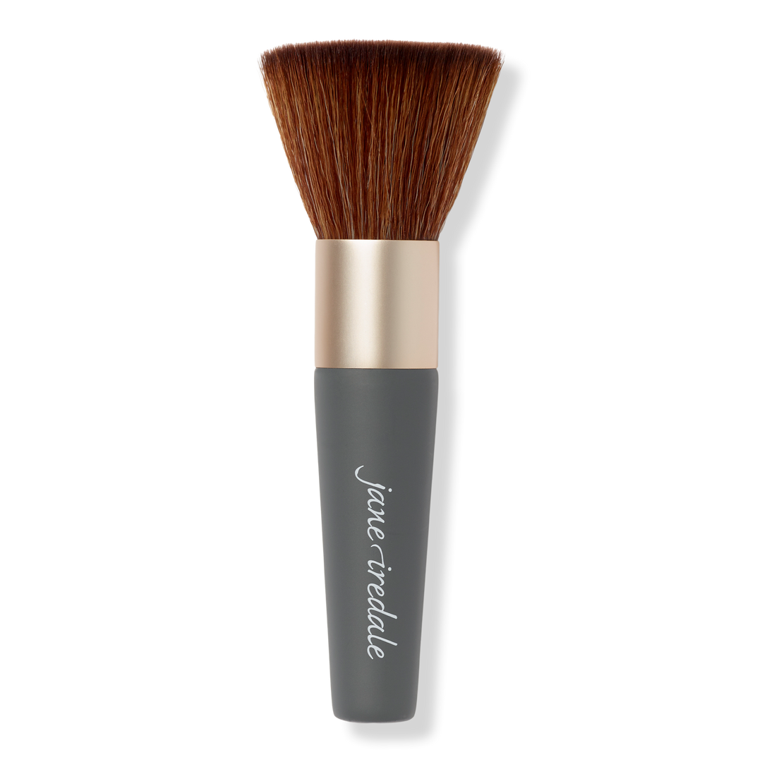 The jane iredale Handi Brush is a medium complexion brush with a flat top and short handle designed to evenly apply and blend powders.