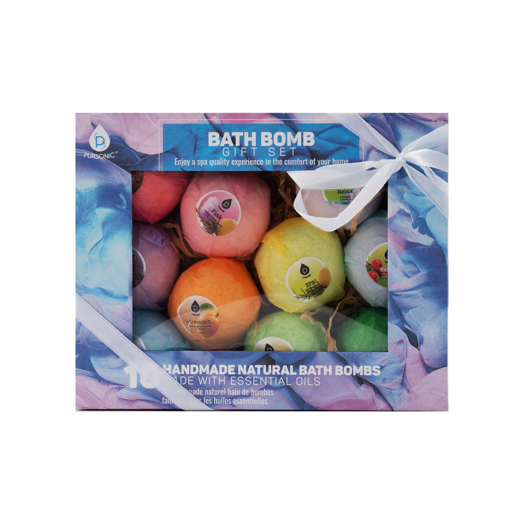 - Set includes 10 bath bombs: Balance, Pink, Clarity, Relax, Euphoria, Restore, Energy, Spa, Heal & Vitamin C