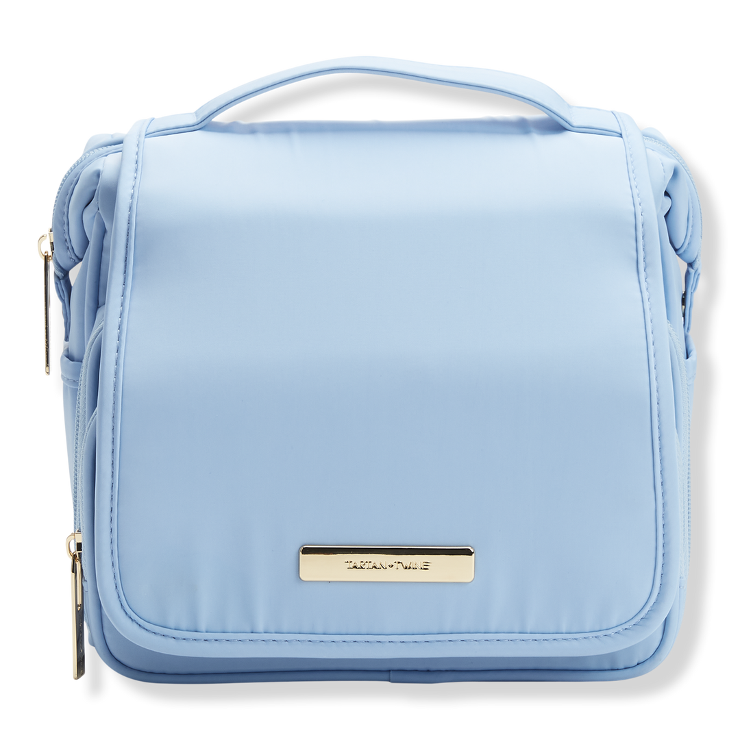 Tartan + Twine's Hanging Organizer with Frame Opening holds essentials in a blue travel case that's pretty plus practical. Can hang in the shower to safely stash your gear.