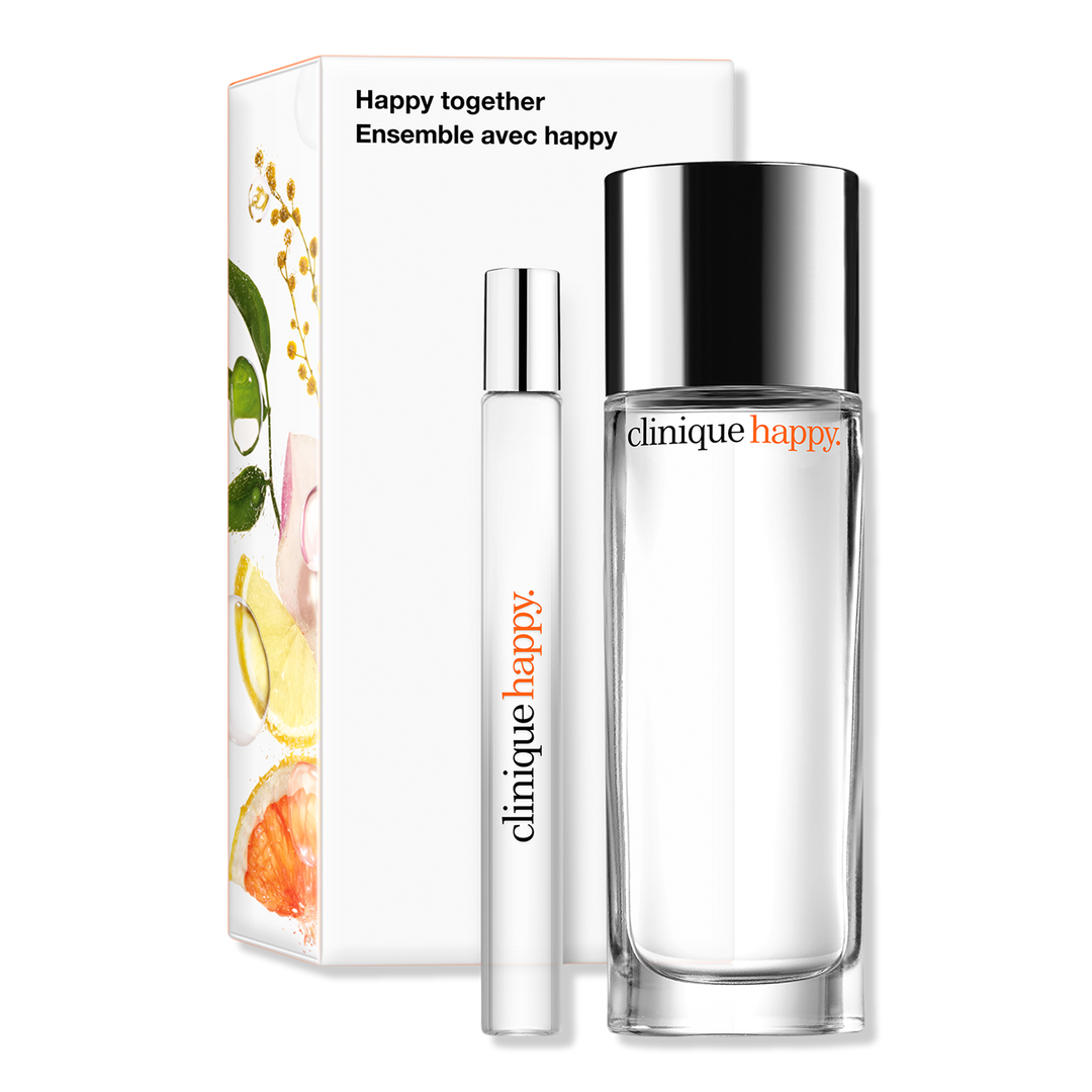 Clinique Happy Together Fragrance Set is a delightful perfume duo. This holiday gift set doubles the happiness with Clinique's bestselling fragrance in two sizes - one for home, one for travel.