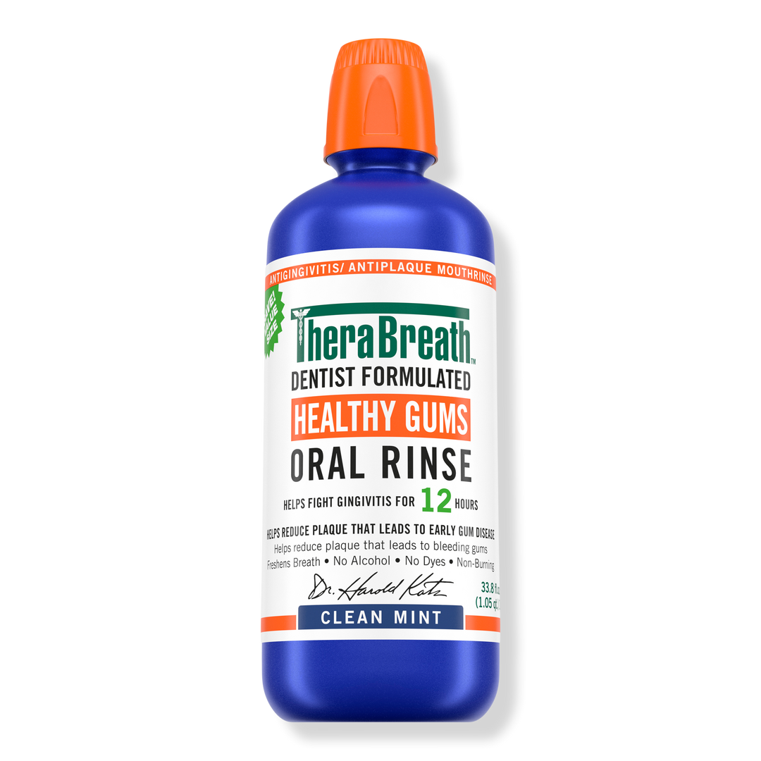 TheraBreath Healthy Gums Oral Rinse controls plaque to help prevent bleeding gums and gingivitis, an early form of gum disease.