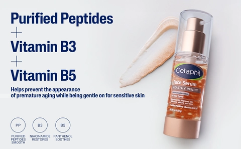 Cetaphil Health Renew Purified Peptides Face Serum significantly improves skin firmness, texture, and tone.