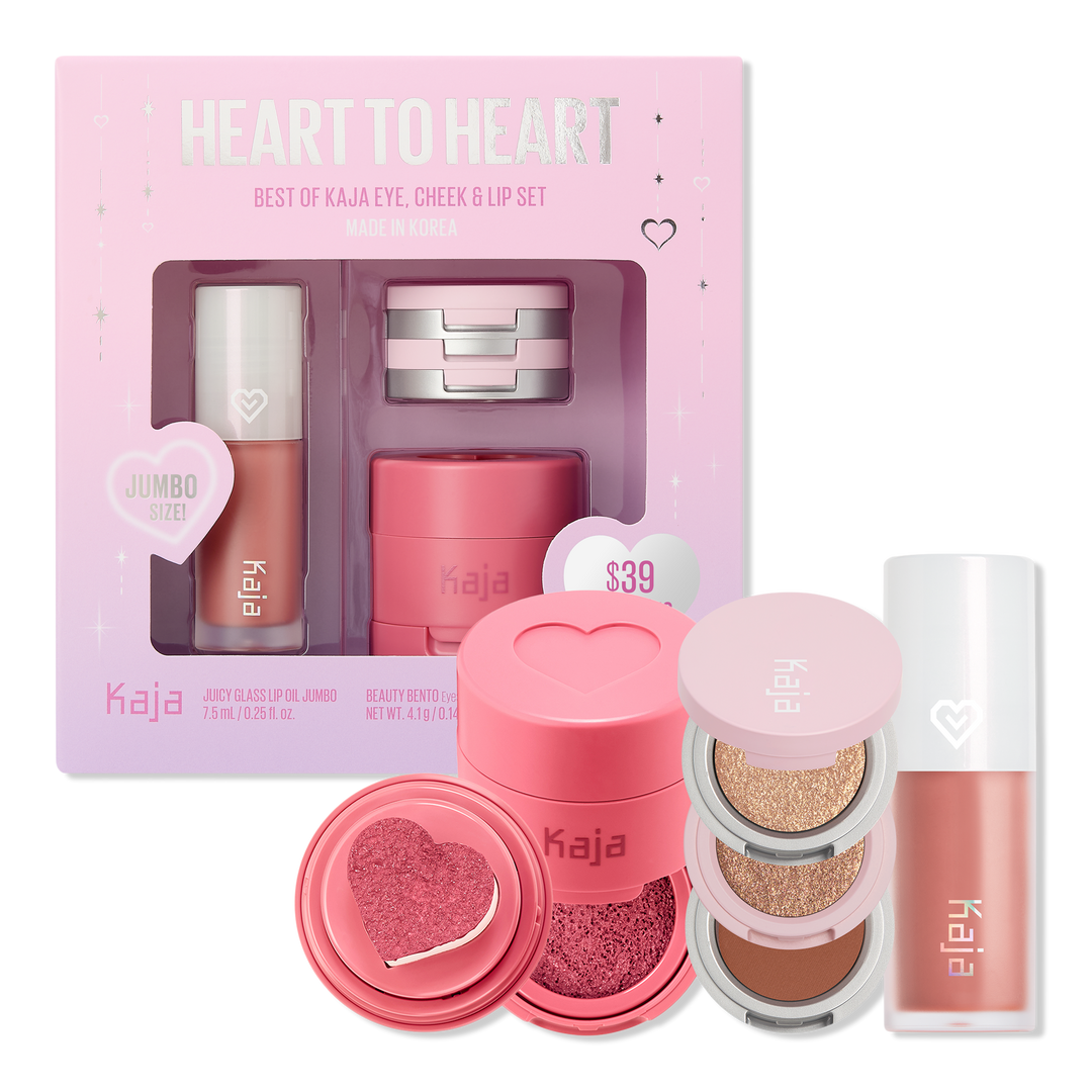 Get Heart to Heart with this Best of Kaja Eye, Cheek & Lip Set. Get glossy lips, playful cheeks, and the perfect eye look all in one cute set.