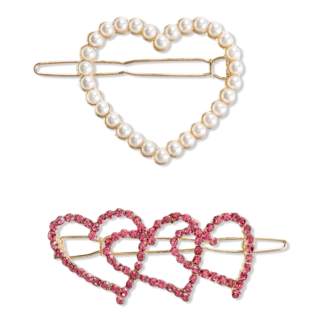 Stack the pair of scünci® by Conair® Heart Jean Wire Barrettes to add a little sparkle to any hairstyle. Rhinestones bring the fun while keeping hair pinned back with ease.