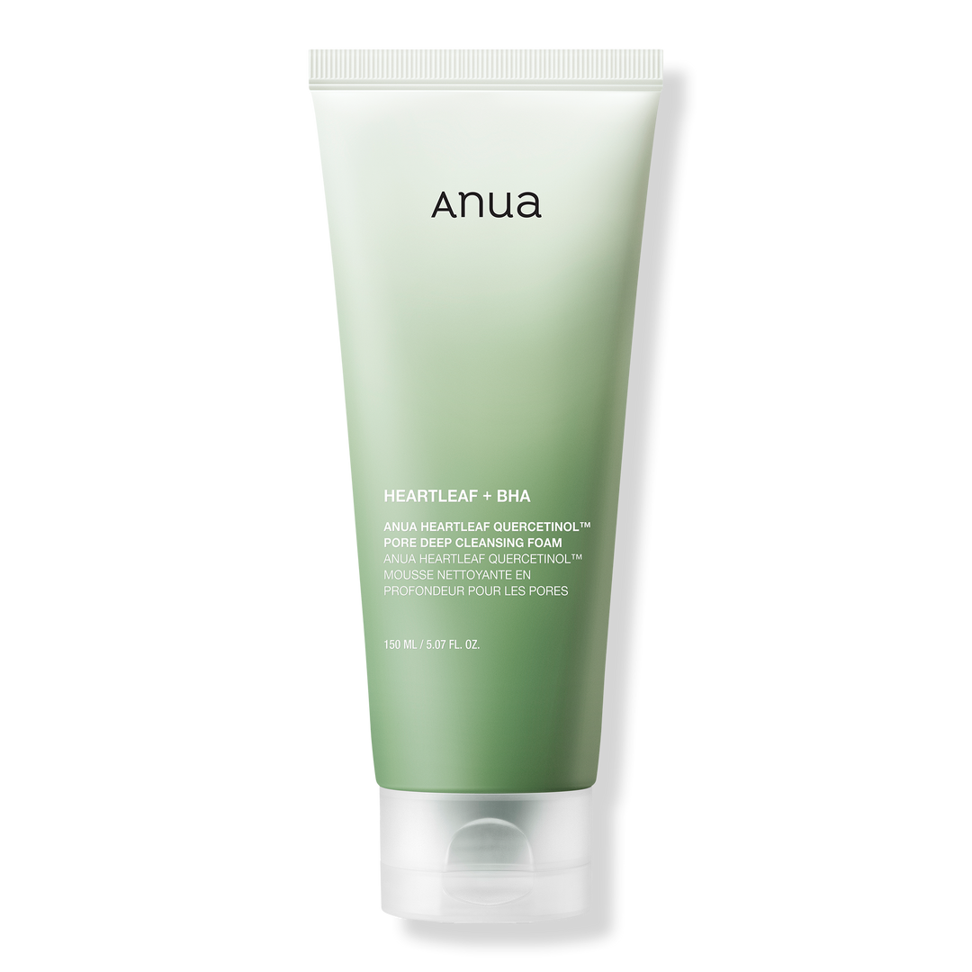 Anua Heartleaf Quercetinol Pore Deep Cleansing Foam infused with soothing ingredients and BHA that cleanses the skin and minimizes the appearance of pores.