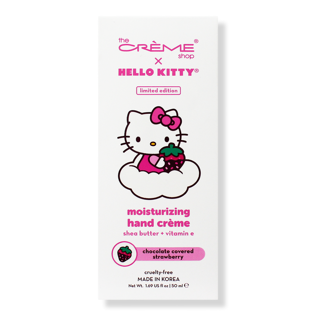 The Crème Shop x Hello Kitty Moisturizing Hand Crème Chocolate Covered Strawberry includes shea butter & vitamin e help nourish dry skin, with delicious notes of chocolate covered strawberry.