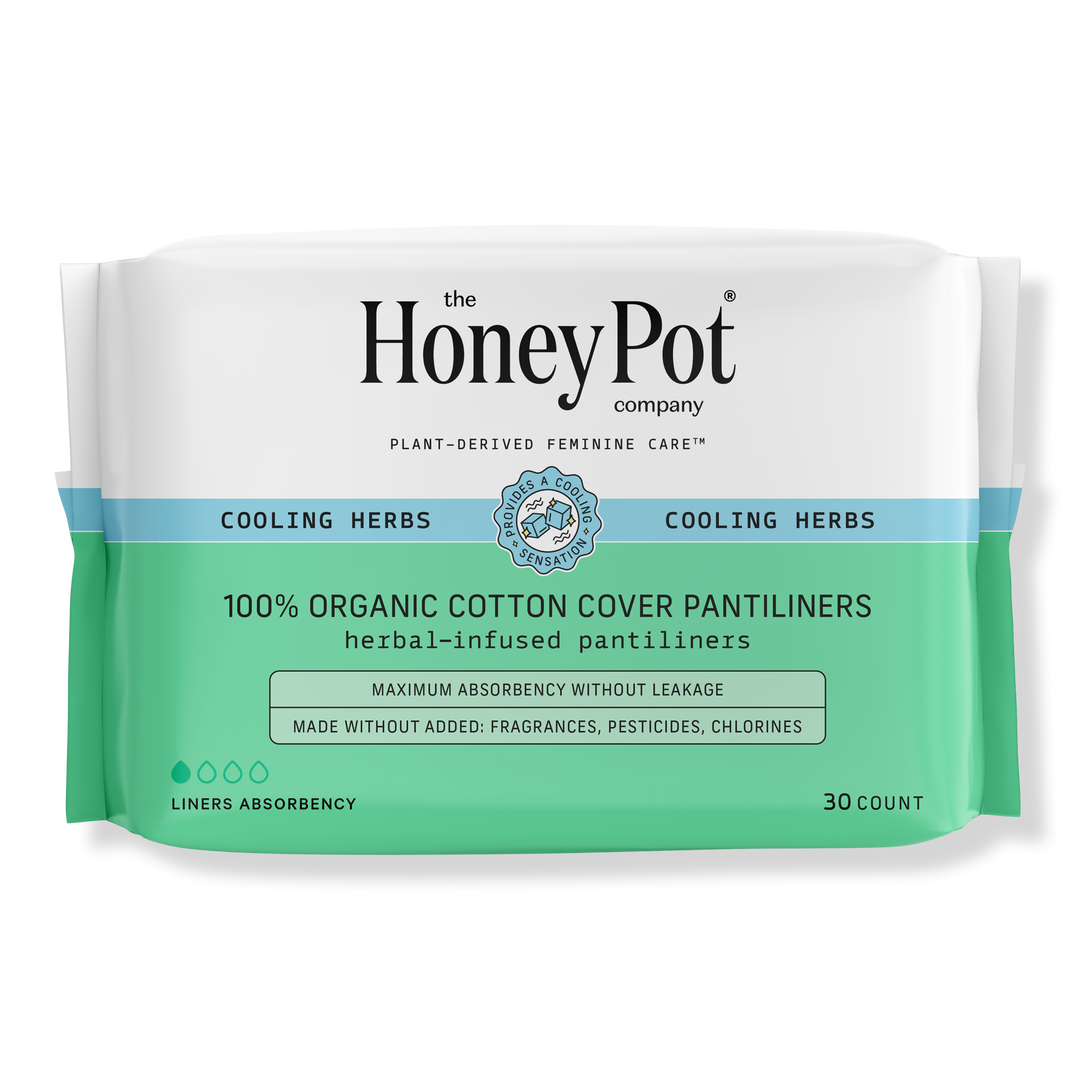 The Honey Pot's 100% Organic Cotton Cover Herbal-Infused Pantiliners are for any time you want a little extra protection and provide a "cooling" sensation for a more peaceful period.