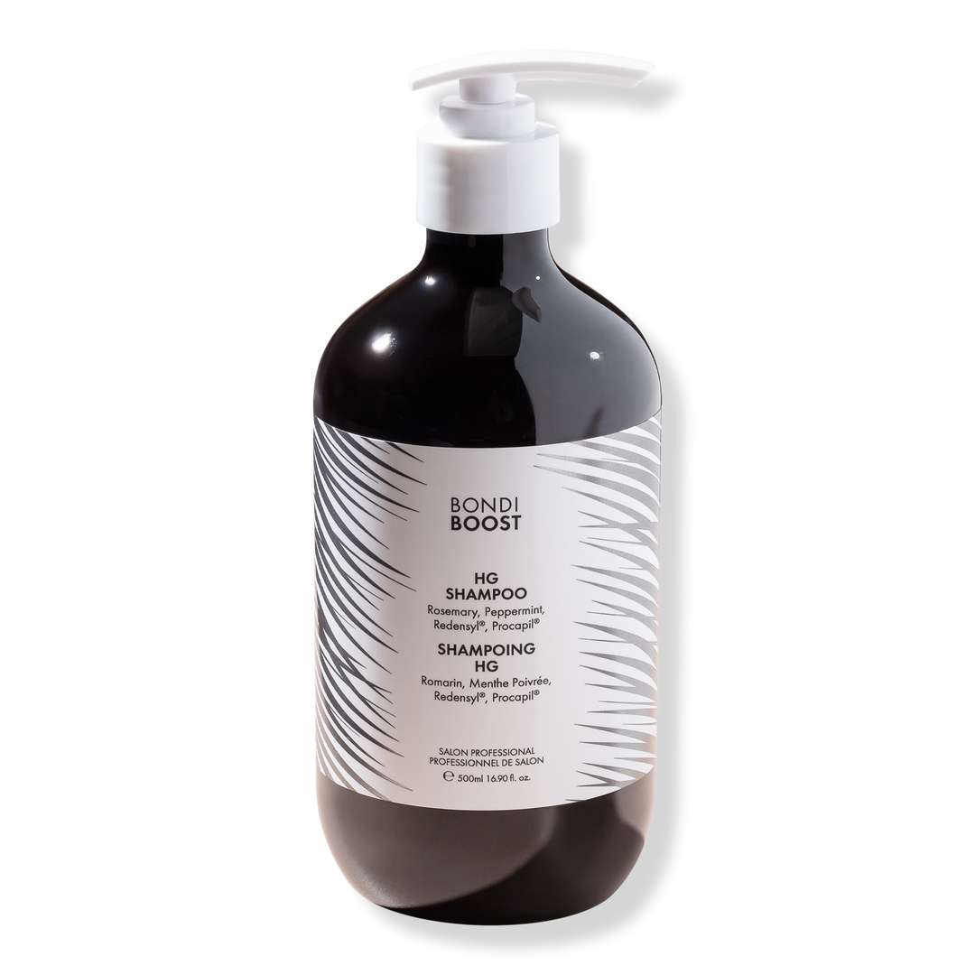 Bondi Boost HG Shampoo for Thinning Hair is a sulphate-free shampoo that gently cleanses while targeting signs of thinning and shedding. Powered by Rosemary to stimulate the scalp and plant-based Redensyl and Procapil—aka “nature’s minoxidil”—for fuller-looking strands.