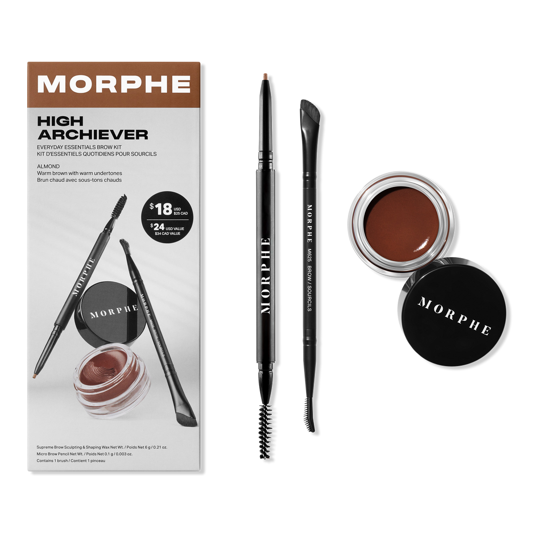 Master your daily brow mood with Morphe's High Archiever Everyday Essentials Brow Kit. Use the precision pencil to create hairlike strokes for natural and filled brows, apply the wax with the brush for lifted, tinted, and tamed brows, or combine all three for detailed and sculpted brows.