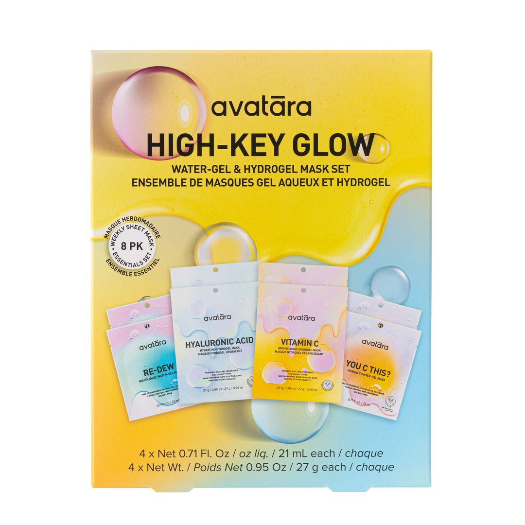 - Discover radiant, hydrated skin with the Avatara High-Key Glow 8-Pack Variety Mask Set. Featuring 2 each of our Hyaluronic Acid, Vitamin C, You C This?, and Re-Dew masks - delivers deep hydration and soothing care. Made with clean, vegan-friendly ingredients for all skin types.