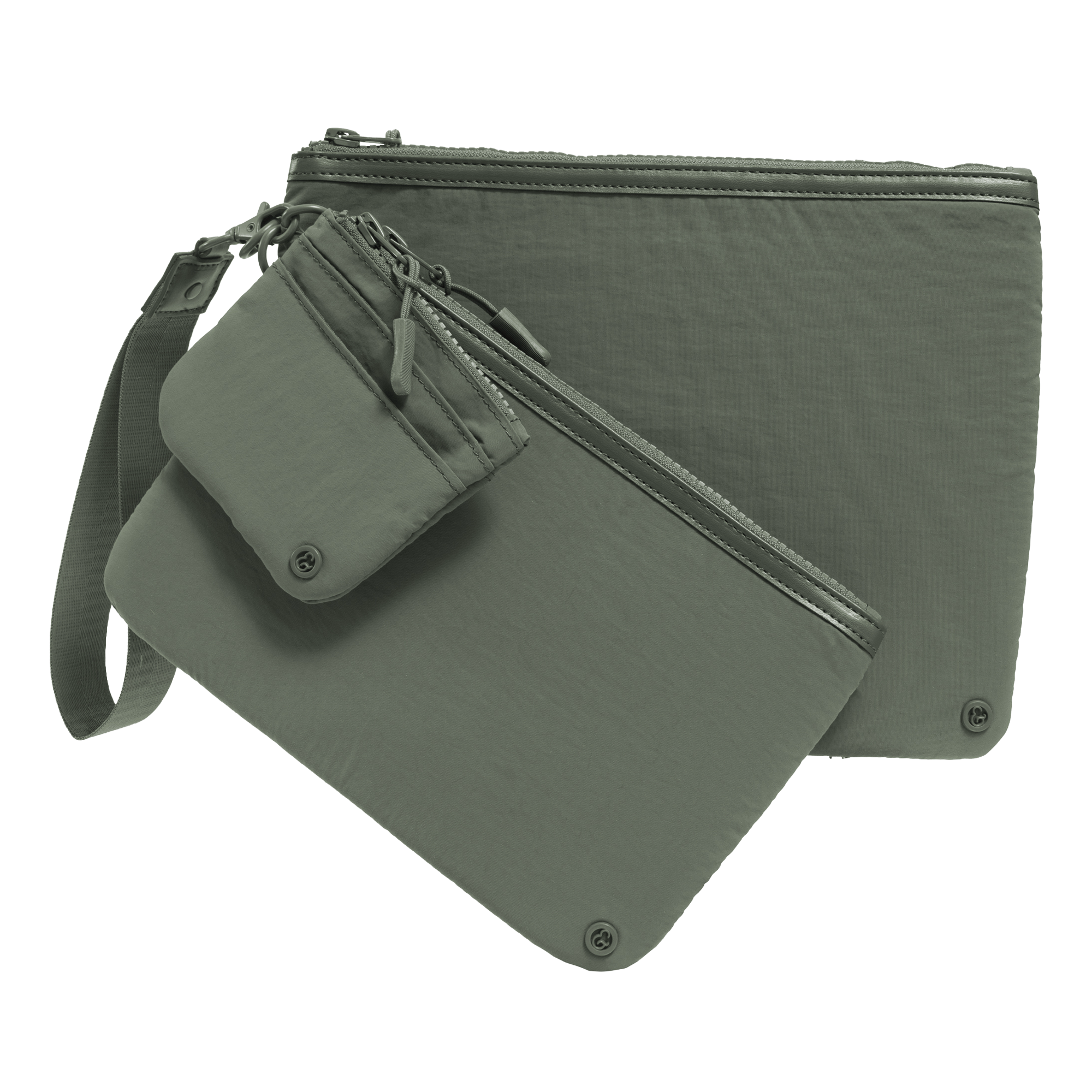 Store your cards and ID in the card case, and use the two zip pouches to organize tech accessories, cash, or other daily essentials—slipping smaller items into the interior mesh pockets for added organization. Attach your keys to the wristlet lanyard, customize by adding or removing pouches as needed, and carry it hands-free for easy, grab-and-go convenience wherever you’re headed.