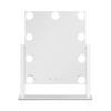 10-inch by 12-inch, 1-time magnified Hollywood vanity mirror. Features 9 energy-saving LED bulbs. 3 light color options with dimmable brightness. Intuitive touch sensor control panel remembers the last brightness setting used. Powered with included USB-C adapter.