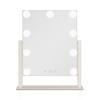 10-inch by 12-inch, 1-time magnified Hollywood vanity mirror. Features 9 energy-saving LED bulbs. 3 light color options with dimmable brightness. Intuitive touch sensor control panel remembers the last brightness setting used. Powered with included USB-C adapter.
